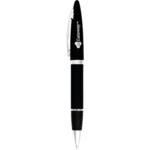 Spray rubber coat finish with bold chrome contrast accents and rubber grip. Twist action mechanism. Pen includes premium black ballpoint ink cartridge.